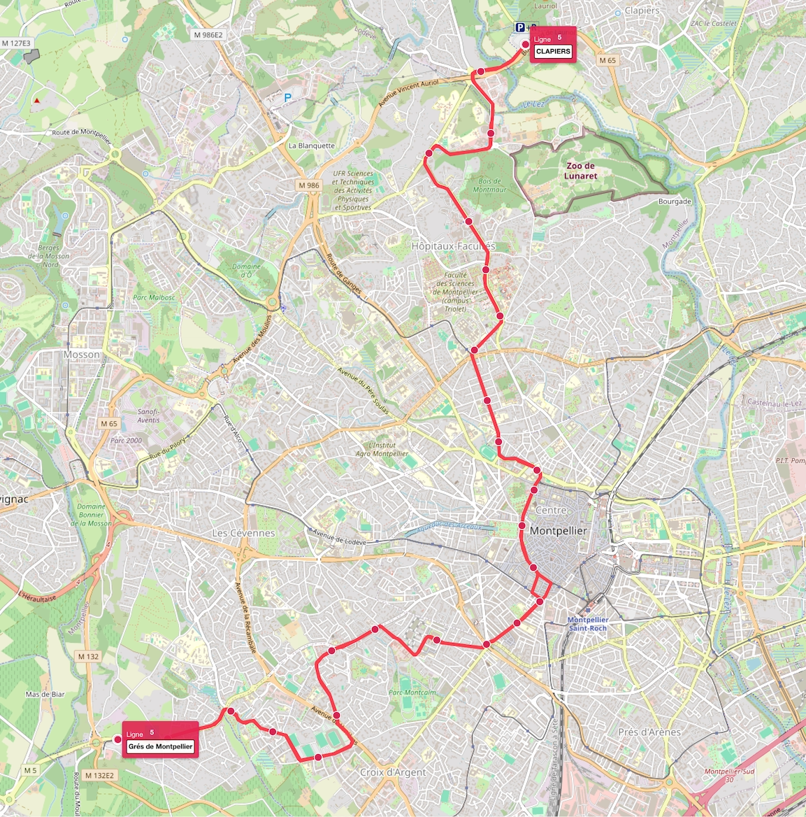 📥 Voir le plan officiel de la ligne 5 de Tramway à Montpellier